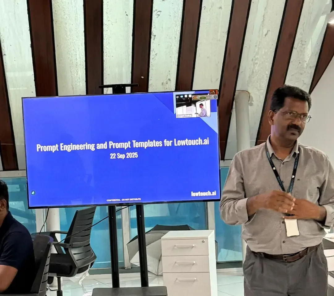In the fast-evolving world of artificial intelligence, staying ahead means not just adopting new tools but mastering how to use them effectively. At Lowtouch.ai, we recently hosted a Knowledge Transfer (KT) session on “Prompt Engineering and Prompt Templates” to empower our teams across marketing, sales, customer success, delivery, engineering, and more. Held on September 22, 2025, this session was tailored for everyone (from developers tinkering with Docker and Kubernetes to sales pros crafting pitches) to make AI accessible and impactful.