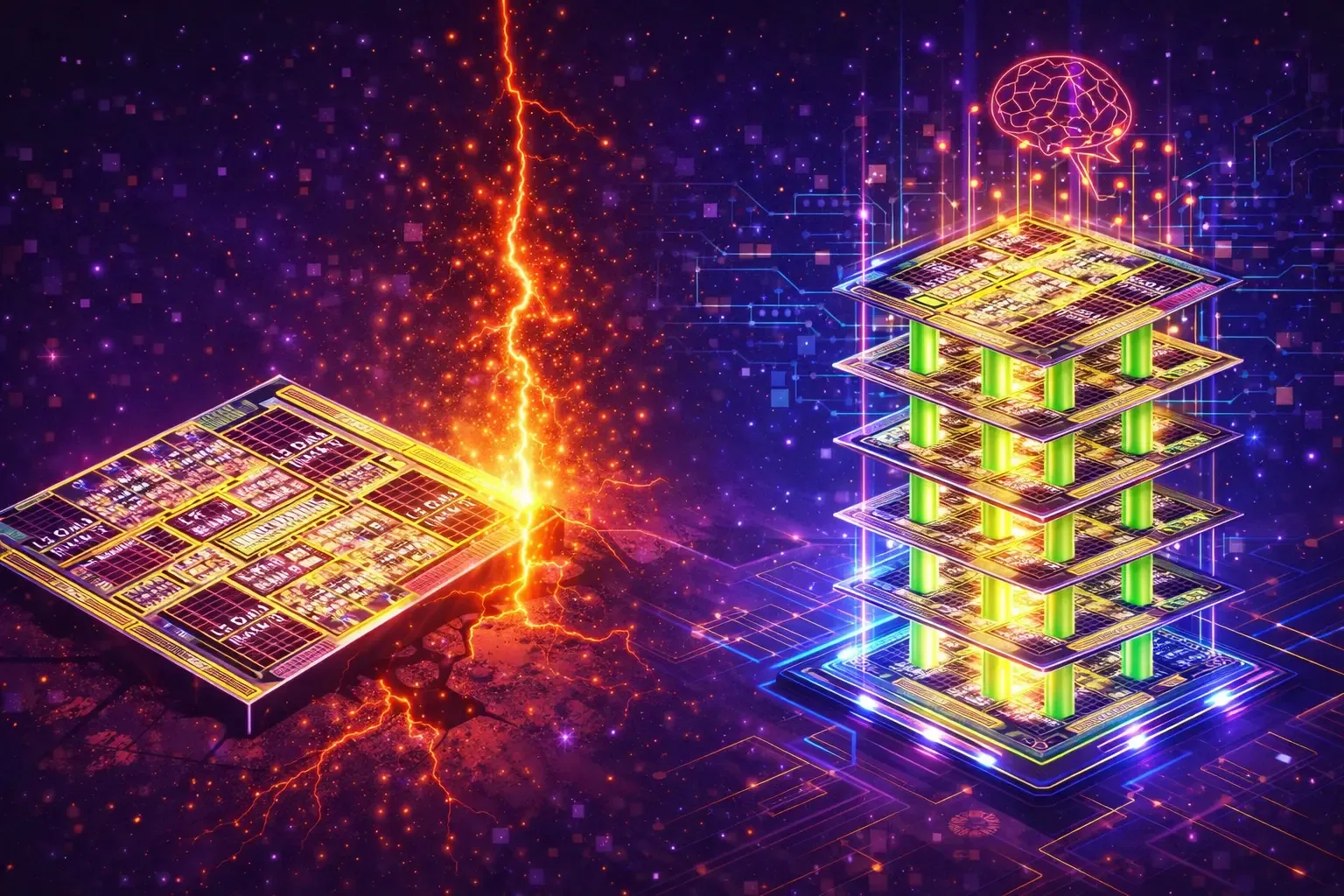 3D AI chips stack memory and compute vertically, shattering the memory wall: 4x-12x performance gains, 6-12x energy efficiency, enabling next-gen LLMs and edge inference.
